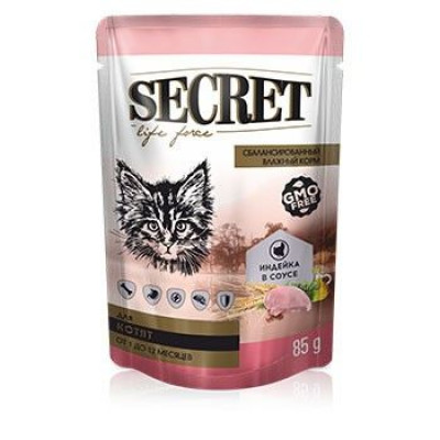 СЕКРЕТ ФО ПЕТС ЛАЙФ ФОРС ПАУЧ Д/КОТЯТ КУСОЧКИ В СОУСЕ С ИНДЕЙКОЙ 85Г. (ВЕТ.) [SECRET FOR PETS LIFE FORCE]