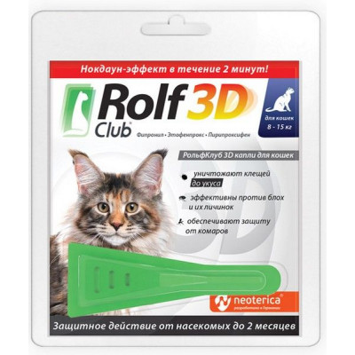 РОЛЬФ КЛУБ 3Д КАПЛИ П/БЛОХ/КЛЕЩЕЙ Д/КОШЕК №1 (8-15КГ.) (ВЕТ.) [ROLF]