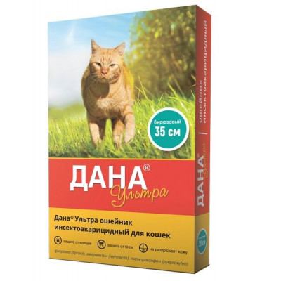 ДАНА УЛЬТРА ОШЕЙНИК Д/КОШЕК П/БЛОХ,КЛЕШЕЙ 35СМ. БИРЮЗ. (ВЕТ.)