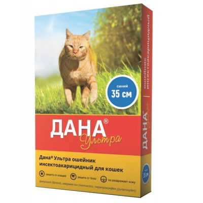 ДАНА УЛЬТРА ОШЕЙНИК Д/КОШЕК П/БЛОХ,КЛЕШЕЙ 35СМ. СИНИЙ (ВЕТ.)