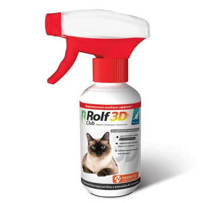 Рольф Клуб 3D спрей для кошек применяют для лечения и профилактики энтомозов, вызываемых блохами и власоедами, акарозов, вызываемых иксодовыми и саркоптоидными клещами, для защиты животных от двукрылых кровососущих насекомых (комаров, мошек и москитов) и профилактики трансмиссивных заболеваний (гемобартонеллез, дирофиляриоз). Противопоказанием к применению является индивидуальная повышенная чувствительность животного к компонентам препарата. Не следует применять Рольф Клуб 3D спрей для кошек больным инфекционными болезнями и ослабленным животным, беременным и кормящим самкам, котятам до