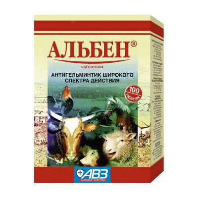 Альбен таблетки назначают для дегельминтизации крупного рогатого скота, овец, коз, свиней, лошадей, пушных зверей и сельскохозяйственных птиц при: желудочно-кишечных нематодозах (гемонхоз, буностомоз, эзофагостомоз, нематодироз, остертагиоз, хабертиоз, коопериоз, стронгилоидоз, трихостронгилез, гиостронгилсз, параскаридоз, аскаридоз, токсокароз, токсаскариоз, анкилостомоз, унцинароз); легочных нематодозах (диктиокаулез, протостронгилез, мюллериоз, неостронгилез, цистокаулез, метастронгилез); цестодозах (мониезиоз, авителлиноз, тизанисзиоз); трематодозах (фасциолез, дикроцелиоз, парамфист
