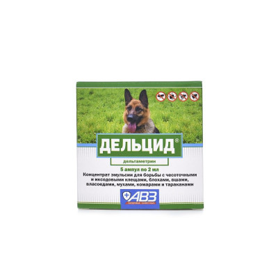 «ДЕЛЬЦИД®» применяют для обработки собак и кроликов при арахноэнтомозах, а также для дезинсекции и дезакаризации животноводческих помещений и других объектов ветеринарного надзора