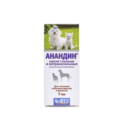 Капли глазные и интраназальные Анандин в 1 мл содержат глюкаминопропилкарбакридон (анандин) — 20 мг Применяют в комплексной терапии конъюнктивитов и ринитов различной этиологии у собак и кошек