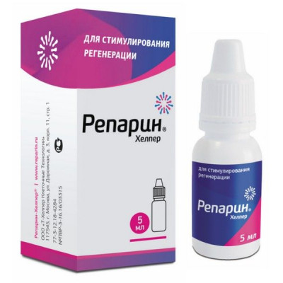 Репарин-Хелпер® ? раствор для местного и наружного применения.Лекарственная форма: капли (5 или 10 мл). Применяют для стимулирования регенерации поврежденных тканей при лечении повреждений глаз, кожи и слизистых оболочек. Подходит для кошек, собак, лошадей и других животных.