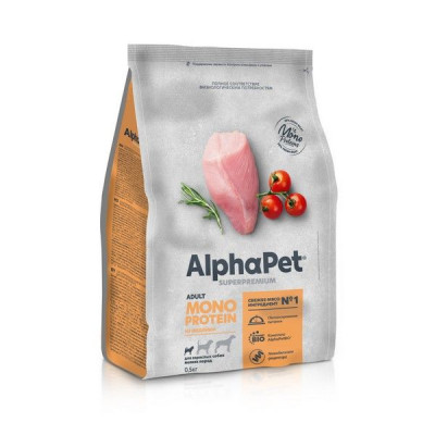 АЛЬФАПЕТ СУПЕРПРЕМИУМ МОНОПРОТЕИН КОРМ Д/СОБАК МЕЛК.ПОРОД ИНДЕЙКА 500Г. /АРТ.121346/ (ВЕТ.) [ALPHAPET]