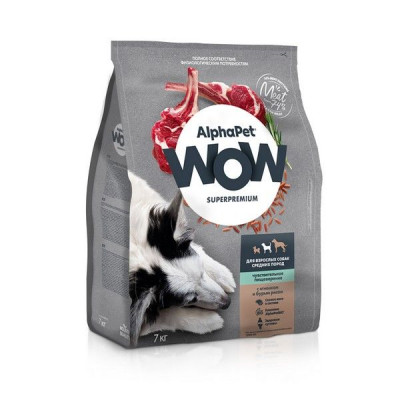 АЛЬФАПЕТ WOW СУПЕРПРЕМИУМ КОРМ Д/СОБАК СРЕДН.ПОРОД С ЧУВСТВ.ПИЩЕВАР. ЯГНЕНОК+БУРЫЙ РИС 7КГ. /АРТ.121335/ (ВЕТ.) [ALPHAPET]