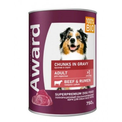 АВАРД ВЛАЖН.КОРМ Д/ВЗР.СОБАК КУСОЧКИ ГОВЯДИНЫ+РУБЕЦ В СОУСЕ 750Г. (ВЕТ.) [AWARD]