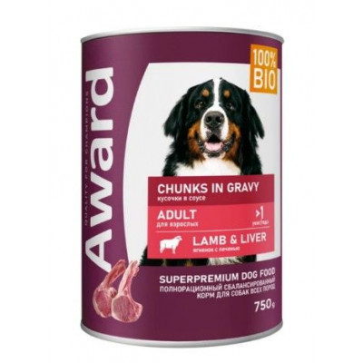 АВАРД ВЛАЖН.КОРМ Д/ВЗР.СОБАК КУСОЧКИ ЯГНЕНКА+ПЕЧЕНЬ В СОУСЕ 750Г. (ВЕТ.) [AWARD]