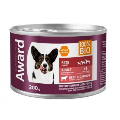 АВАРД ВЛАЖН.КОРМ Д/ВЗР.СОБАК ПАШТЕТ ГОВЯДИНА+МОРКОВЬ 200Г. (ВЕТ.) [AWARD]