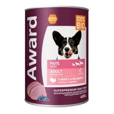 АВАРД ВЛАЖН.КОРМ Д/ВЗР.СОБАК ПАШТЕТ ИНДЕЙКА+ЧЕРНИКА 400Г. (ВЕТ.) [AWARD]