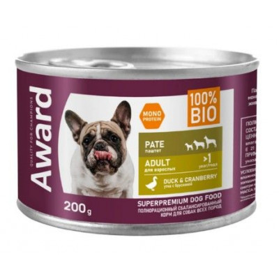 АВАРД ВЛАЖН.КОРМ Д/ВЗР.СОБАК ПАШТЕТ УТКА+БРУСНИКА 200Г. (ВЕТ.) [AWARD]