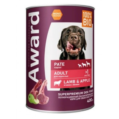 АВАРД ВЛАЖН.КОРМ Д/ВЗР.СОБАК ПАШТЕТ ЯГНЕНОК+ЯБЛОКО 400Г. (ВЕТ.) [AWARD]