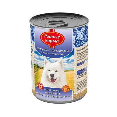РОДНЫЕ КОРМА КОНСЕРВА Д/СОБАК ЕЛЕЦ ГОВЯДИНА+ПОТРОШКИ В ЖЕЛЕ ПО-КУПЕЧЕСКИ 970Г. (ВЕТ.)