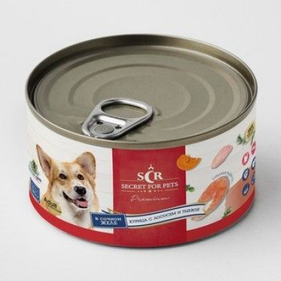 СЕКРЕТ ФО ПЕТС ПРЕМИУМ КОНСЕРВЫ Д/СОБАК КУРИЦА С ЛОСОСЕМ И ТЫКВОЙ В ЖЕЛЕ 185Г. (ВЕТ.) [SECRET FOR PETS]
