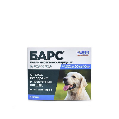 БАРС КАПЛИ П/БЛОХ/КЛЕЩЕЙ Д/СОБАК ОТ 20 ДО 40КГ. 2,68МЛ. №1 ПИПЕТКА (ВЕТ.)