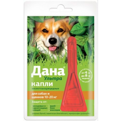 ДАНА УЛЬТРА КАПЛИ ИНСЕКТОАКАТИЦИДНЫЕ Д/СОБАК И ЩЕНКОВ 10-20КГ. (ВЕТ.)