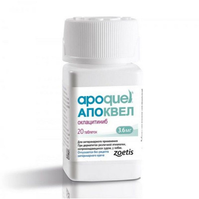 Апоквел применяют собакам перорально индивидуально с руки или в смеси с кормом, либо вводят принудительно в пасть в разовой дозе 0.4-0.6 мг оклацитиниба на 1 кг массы животного 2 раза/сут, не более 14 суток.В качестве поддерживающей терапии при атопическом дерматите - 1 раз/сут в той же дозе, но не более 14 недель.Схема и длительность курса применения препарата зависят от этиологии и патогенеза дерматита, клинического состояния животного и определяются лечащим ветеринарным врачом.Следует убедиться в том, что собака полностью проглотила необходимую дозу препарата. Прием корма н